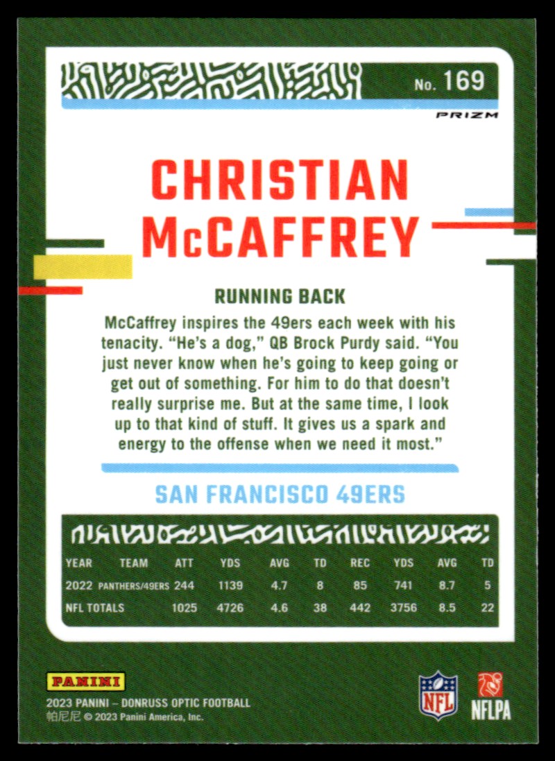 2023 Donruss Optic Holo Christian Mccaffrey San Francisco 49ers #169