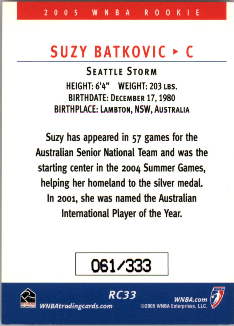 2005 WNBA Rookies #RC33 Suzy Batkovic /333 - NM-MT