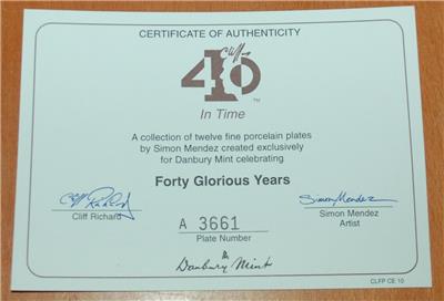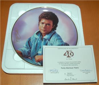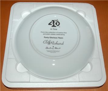 Cliff Richard Danbury Mint "In Time" plate. Part of the Forty Glourious Years series. Comes in original styrofoam packaging and includes numbered certificate.