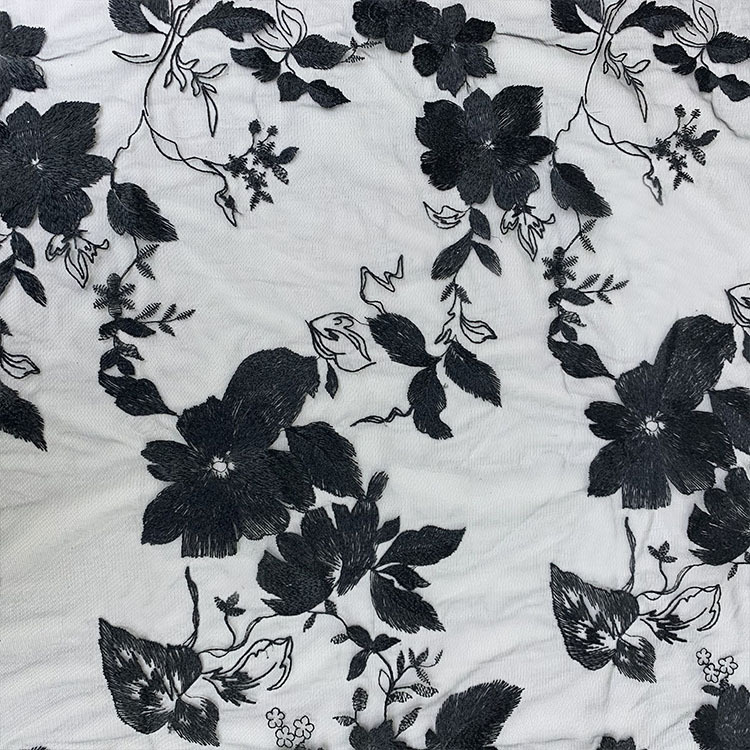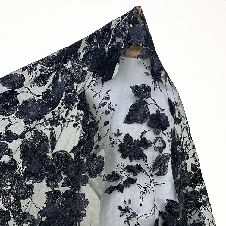 Large Flowers Embroidered Tulle Lace Fabric by yard