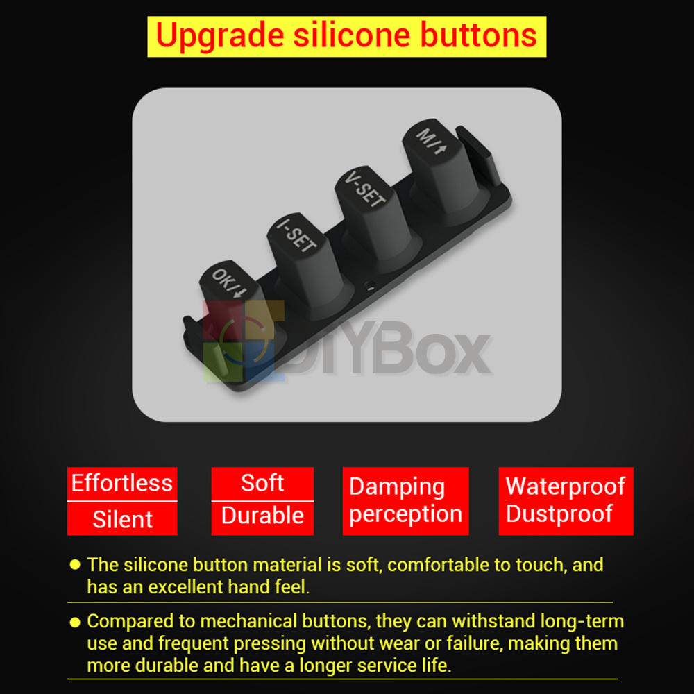 2.Independent silicone keys to set the voltage or current, a key to enter, a key to exit, fast and simple, refuse to be cumbersome