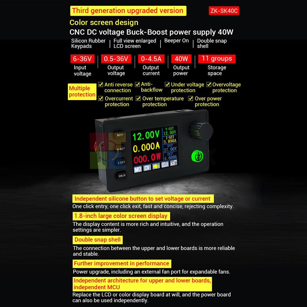 SK40C CNC Boost Buck Voltage Adjustable Regulator Power Supply Module 6-36V 40W