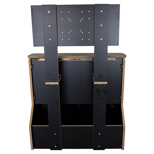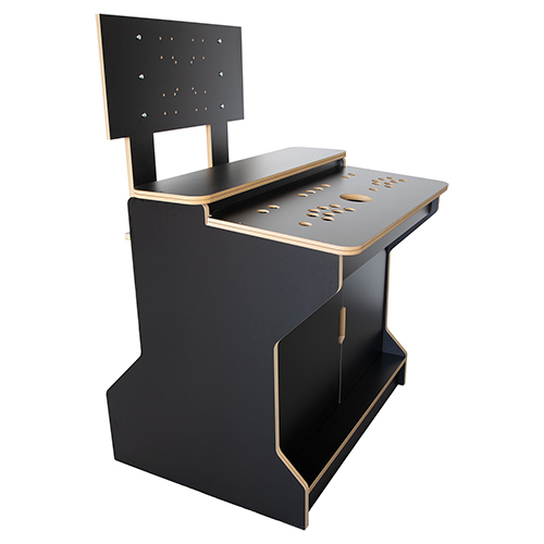 This 2 player sit down arcade cabinet kit is manufactured from 18mm MDF and professionally cut on a CNC machine for perfect precision every time. This 2 player flat pack sit down arcade cabinet kit features a 2 player layout, black finish, storage cupboard with doors on the front and is compatible with VESA monitors up to 40". An adjustable wooden VESA mount and bolts are included in the box with each kit. The control panel is pre-drilled for 2 x joysticks and 8 x buttons per player and the button holes are 30mm in diameter, so compatible with many of the popular brands on the market, including Sanwa, Seimitsu, IL, Suzo Happ, classic arcade buttons and more. The joystick holes are recessed, so most of the popular joysticks on the market will mount in this kit, including Zippyy, IL, SuzoHapp, Sanwa and Seimitsu. Each kit has been pre-slotted for t-molding (sold separately) This 2 player sit down arcade cabinet kit comes supplied with joystick bolts, instructions and also includes all fixings required for self assembly.