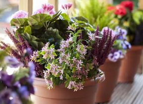 Wipe leaves clean with a damp cloth. Use compressed air on the flowers if required. Suitable for indoor use only.