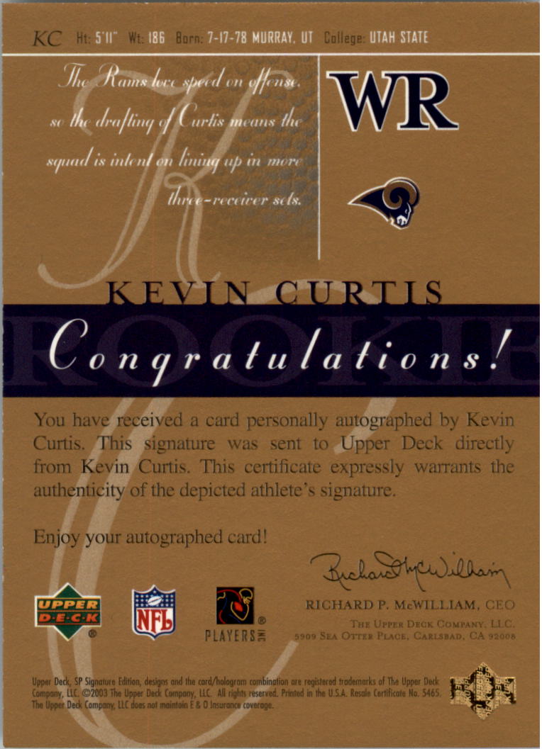 2003 SP Signature Autographs Blue Ink #KC Kevin Curtis Auto - NM-MT