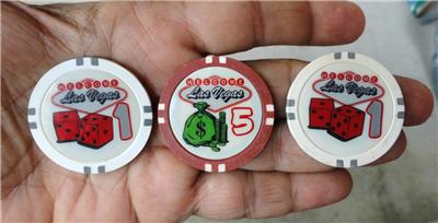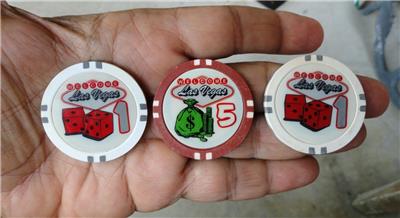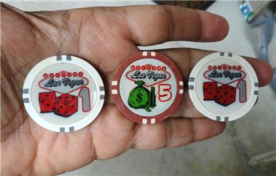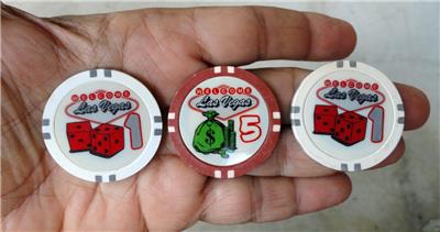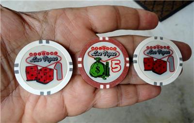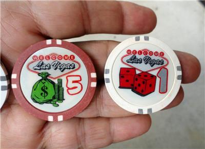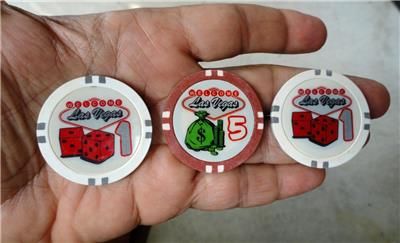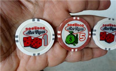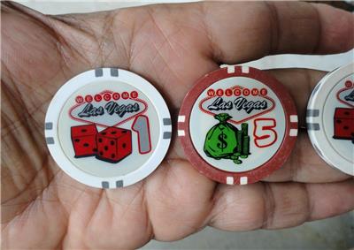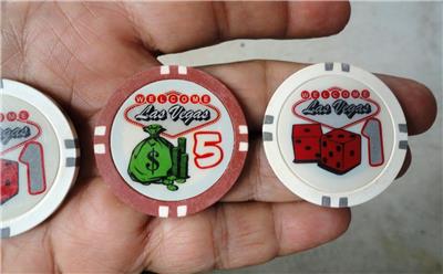 Clay Casino/Poker ChipsFEATURED: 3 vintage WELCOME LAS VEGAS Clay Casino/Poker Chips! Two (1) One Dollar & One (1) Five Dollar. They all measure about 1 ½” in diameter x ⅛” thick. Both sides have: WELCOME / LAS VEGAS.