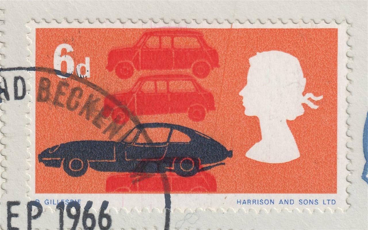 6d cars with red printed double. Upright scratch, otherwise lovely condition stamp. Non phosphor.