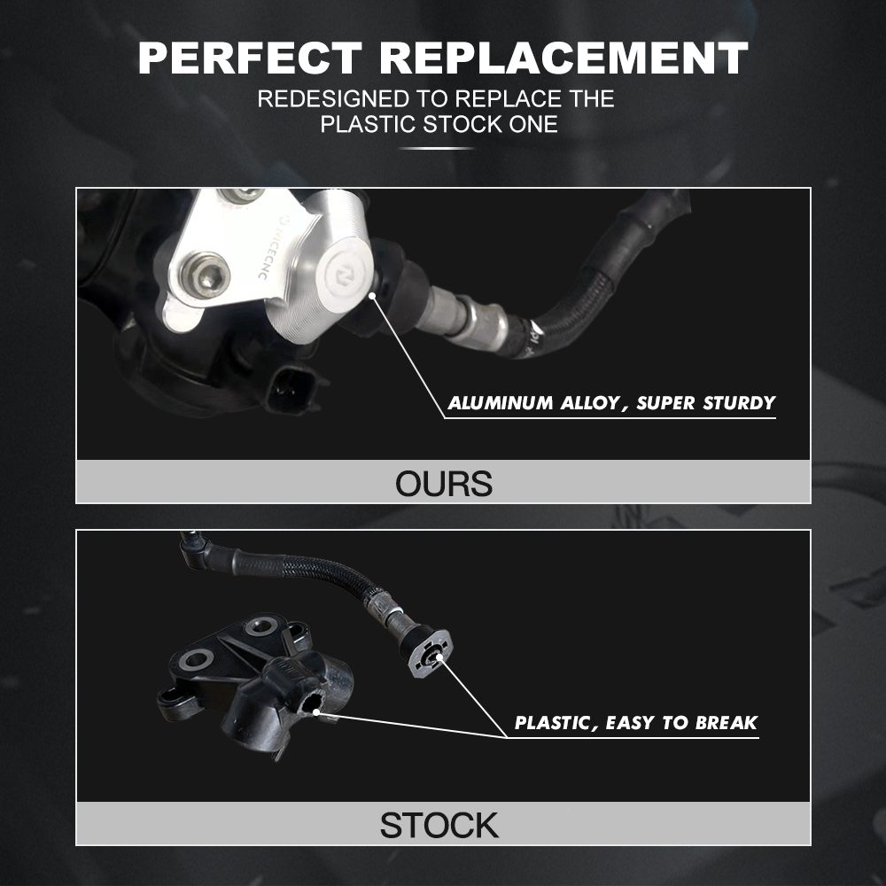1.Features a redesigned billet aluminum fuel injector rail designed to replace the Plastic Stock one.