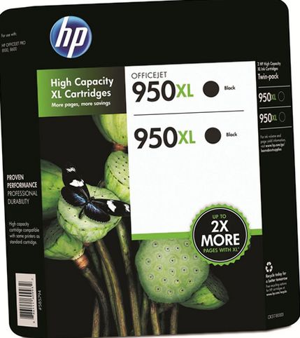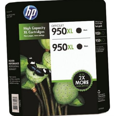 950XL Black Ink Cartridge - Twin Pack. 2 ink cartridges included. High capacity cartridges compatible with same printers as standard cartridges. Compatible with HP OfficeJet Pro 8100, HP OfficeJet Pro 8600 Take advantage of the proven performance and professional durability of the HP 950XL black ink.