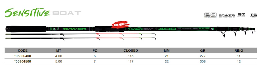 The highest quality boat rods, super strong and sensitive together with the light weight and perfect balancing. The 2 tips are simply the best ones and make these rods with a prefect curve action avoiding bad angles and so strange breakages. High module carbon renforced with high resistance fibers; precious finishings, anti corrosion guides and renforced reel seat. All the se features will lwt you fall in love with the SENSITIVE BOAT from the Maver brand.