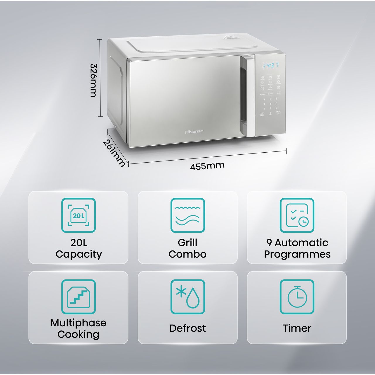Hisense H20MOMSS4HGUK 700 Watt 20 Litres Free Standing Microwave Mirror Silver