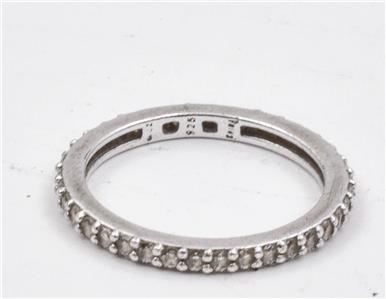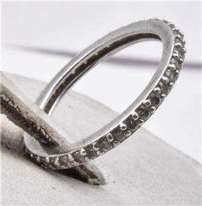 This is a polished finish, very shiny CZ eternity band, all the way around in a size 5, and approx., 1/2 carat of CZ's, so not heavy on carat weight, but really nicely made, wth all the original stones intact. It is 2mm wide. The stones look dark in my pictures, but they are really nice in person.