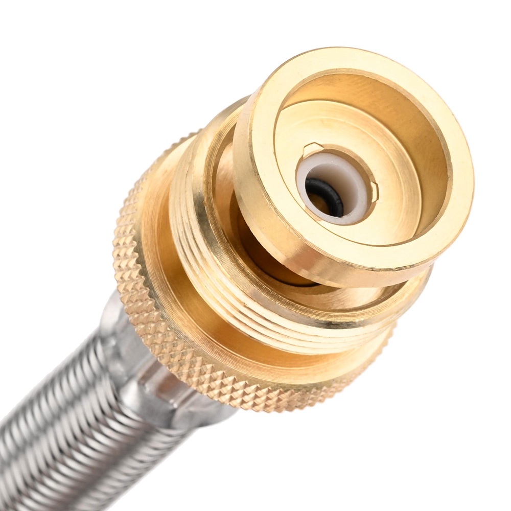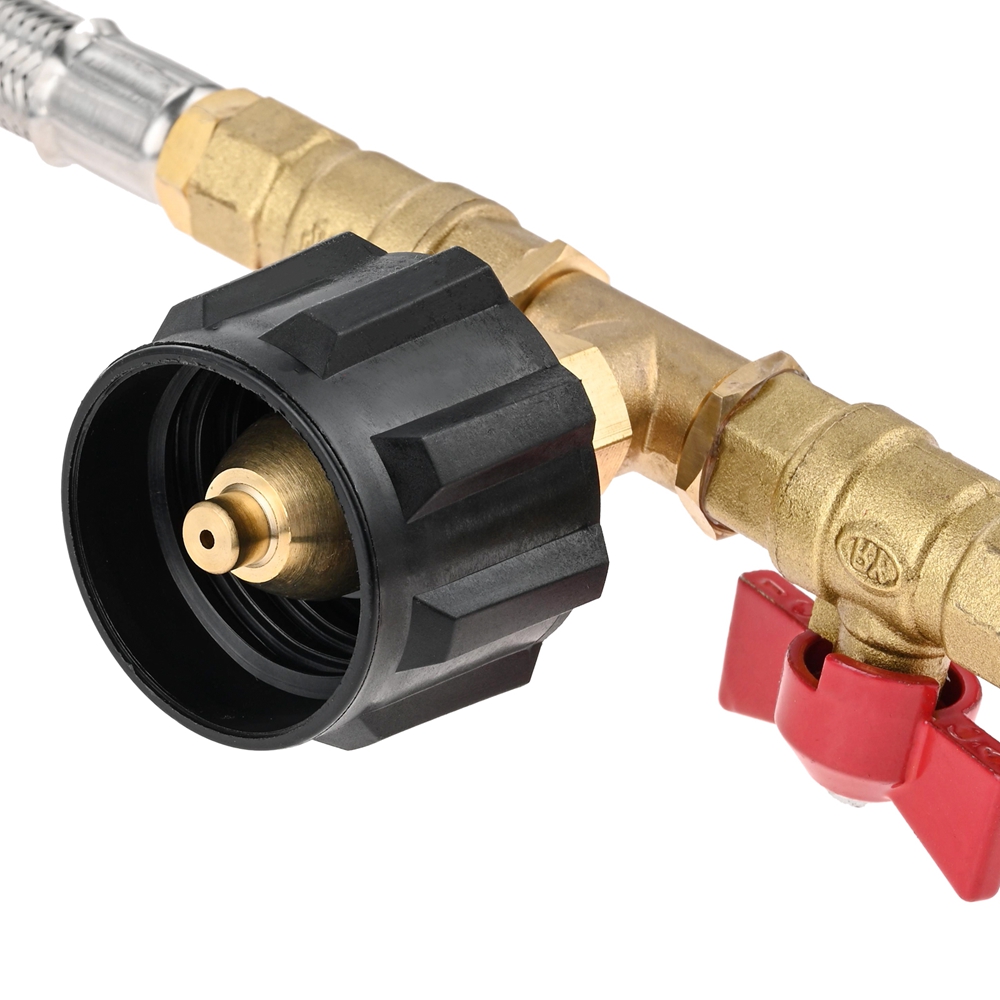 • 1, This refill adapter hose assembly fits for camping, tailgating, heating needs or having an outdoor cookout, for lantern, heater, portable grill, tabletop grill, and more. 2, 350PSI rated high pressure propane extension hose designed with control needle valve to control the flow, can protect from over flow and over heater to ensure safety. 3, The Y-split extension hose help you connect CGA 1lb tank regulator to QCC1 type propane cylinder for camping grill or stove easily at the same time to hook up your tank, and connect the 20~50lbs propane tank by hand without any tools. 4, Both adapters made of brass and Two 5 Feet Propane Splitter Hose are made of durable stainless steel which is durable for long-lasting to use.