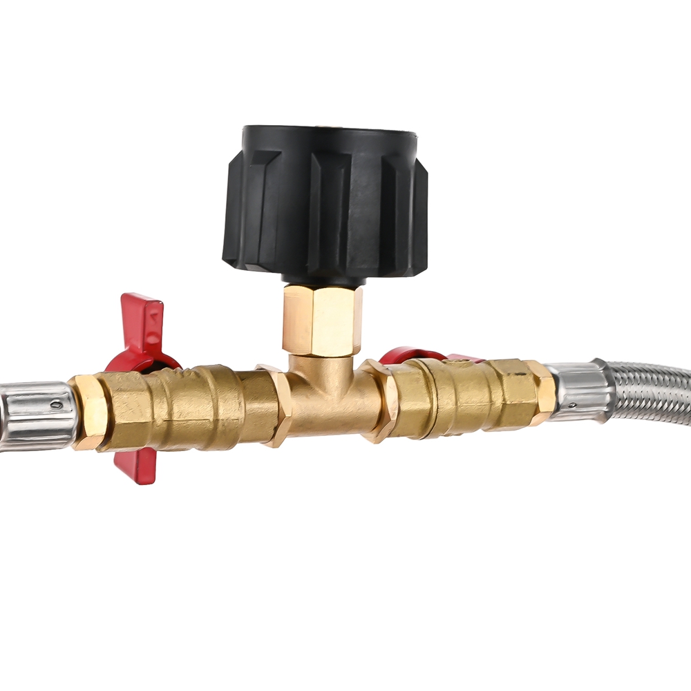 3, The Y-split extension hose help you connect CGA 1lb tank regulator to QCC1 type propane cylinder for camping grill or stove easily at the same time to hook up your tank, and connect the 20~50lbs propane tank by hand without any tools.