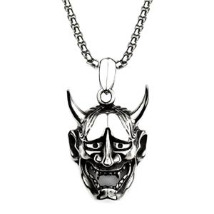 This striking necklace features a substantial stainless steel pendant strung on a 24" rounded box chain (12" hang).