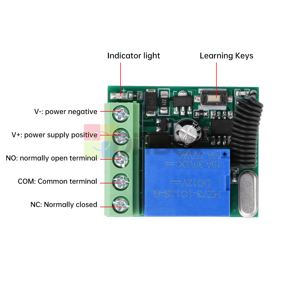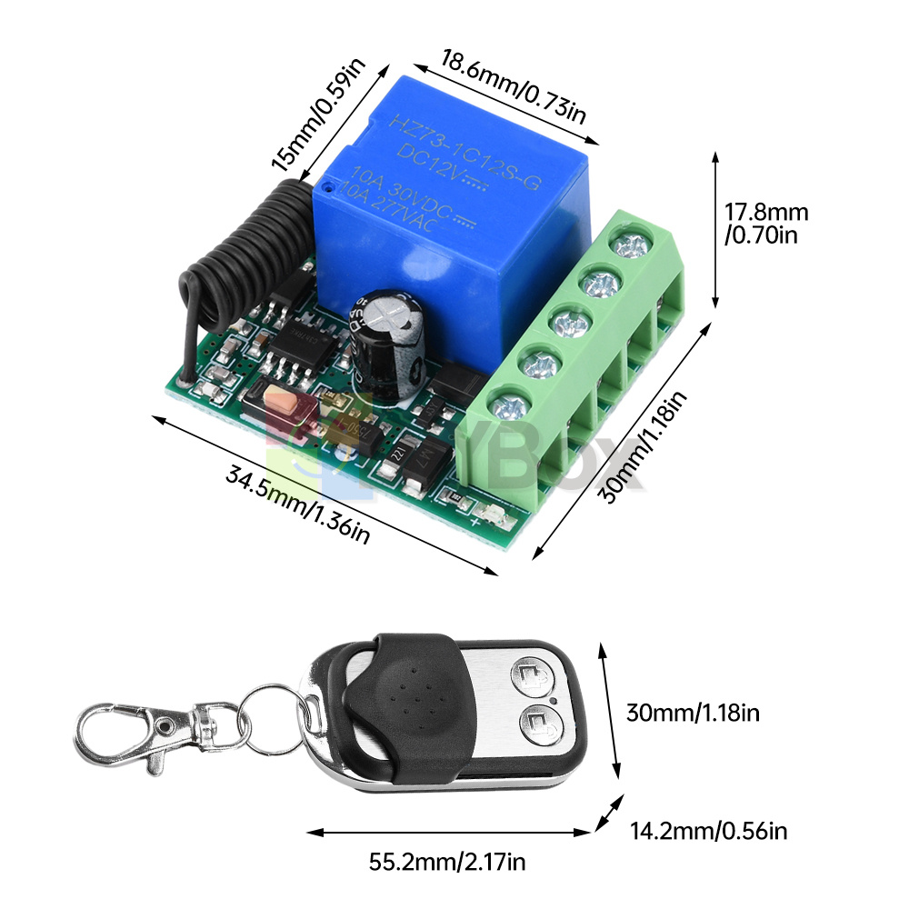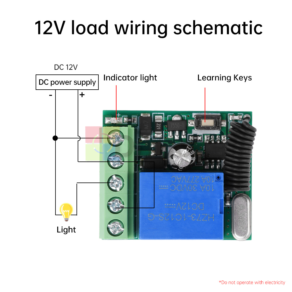 DC12V 433MHz Single Way Relay Wireless Remote Control Switch Receiver Module 10A