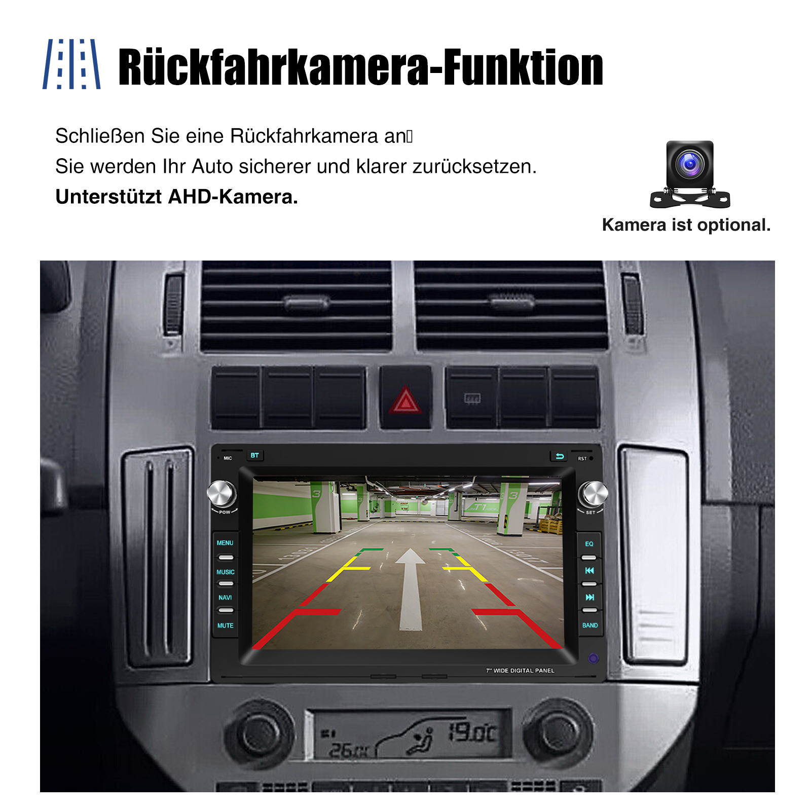 AHD Rückfahrkameraeingang und Lenkradkontrolle: Nach dem Anschluss an die Rückfahrkamera. Das Radio zeigt automatisch das Rückfahrbild an, sobald Sie den Rückwärtsgang einlegen. Machen Sie Ihr tägliches Rückwärtsfahren sicherer. Unterstützt AHD-Kamera. Unterstützt die originale Auto-Lenkradsteuerung (wenn Ihr Auto Canbus nicht unterstützt und SIE die Lenkradtasten lernen), um das Fahren bequemer und sicherer zu machen.