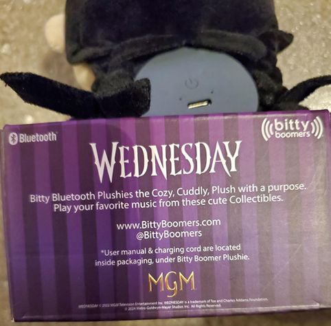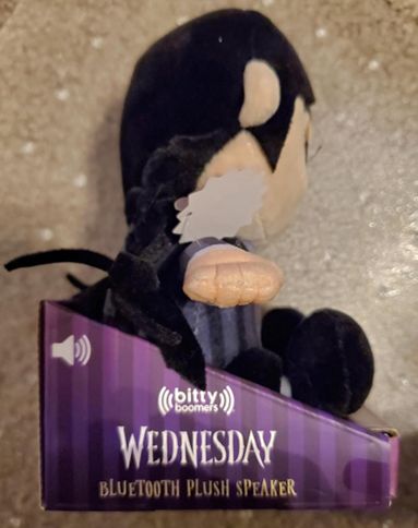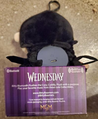 Bitty Boomers Bluetooth plushies, the cozy, cuddly, plush with a purpose. Play your favorite music from these cute collectibles. Featuring Wednesday.