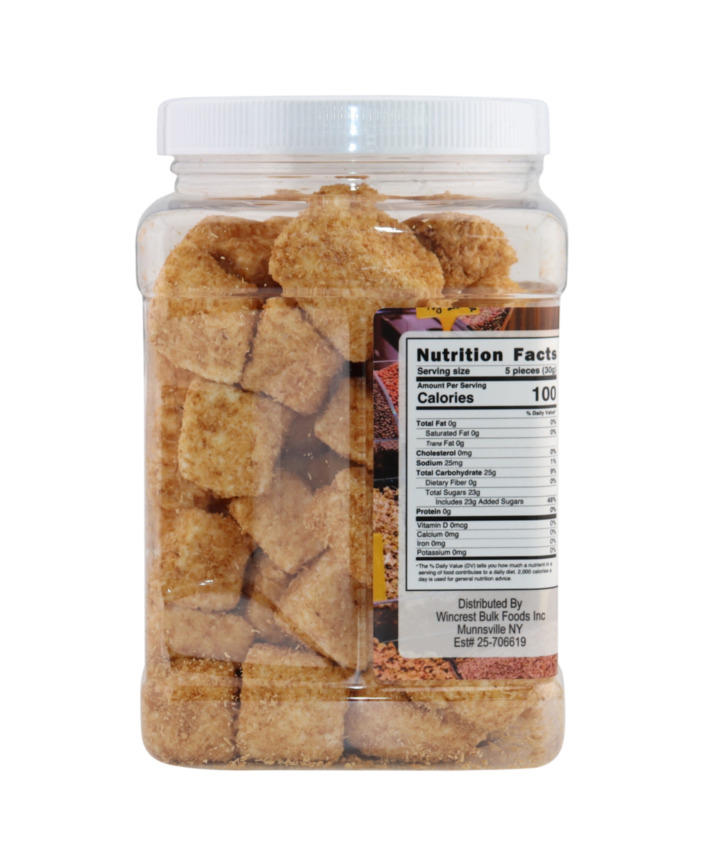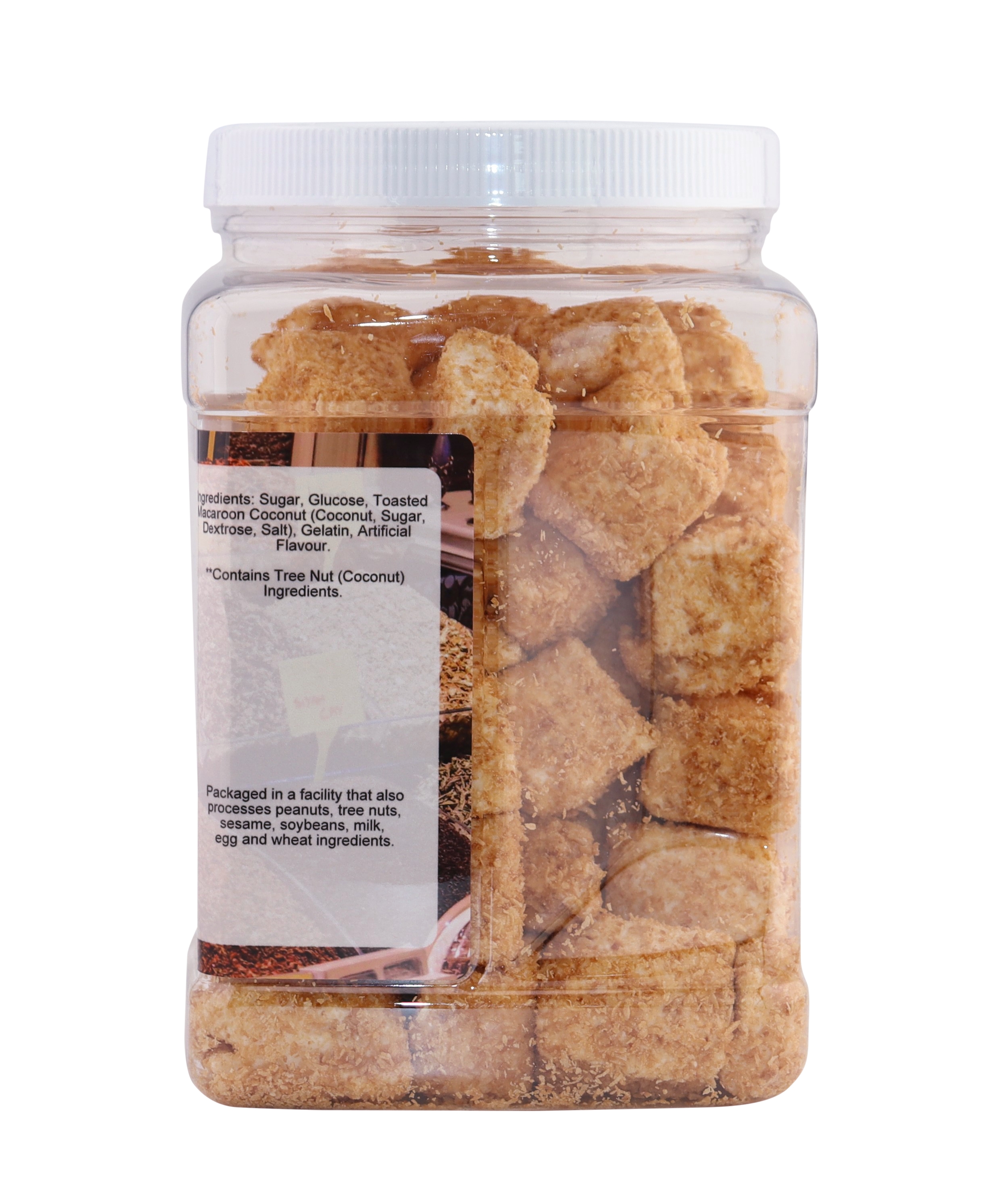 Ingredients: Sugar, Glucose, Toasted Macaroon Coconut (Coconut, Sugar, Dextrose, Salt), Gelatin, Artificial Flavor.