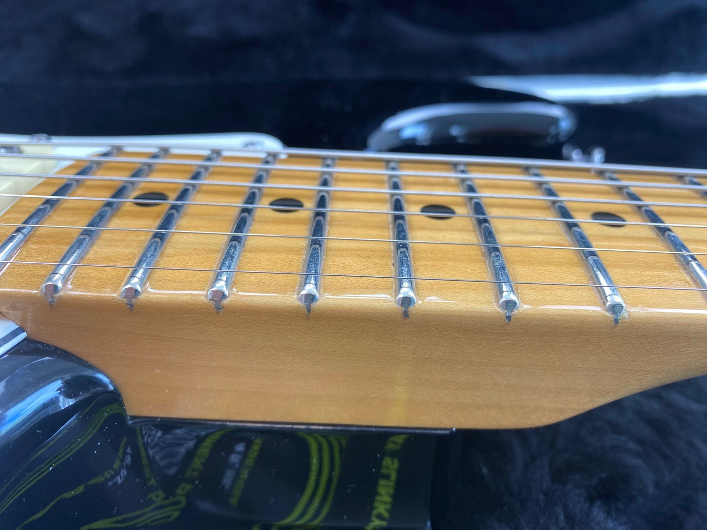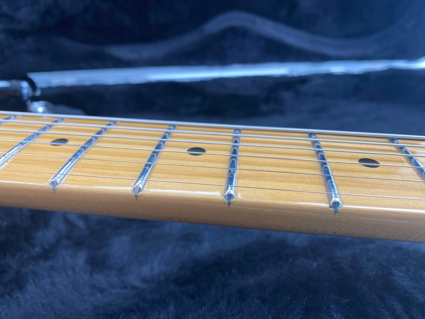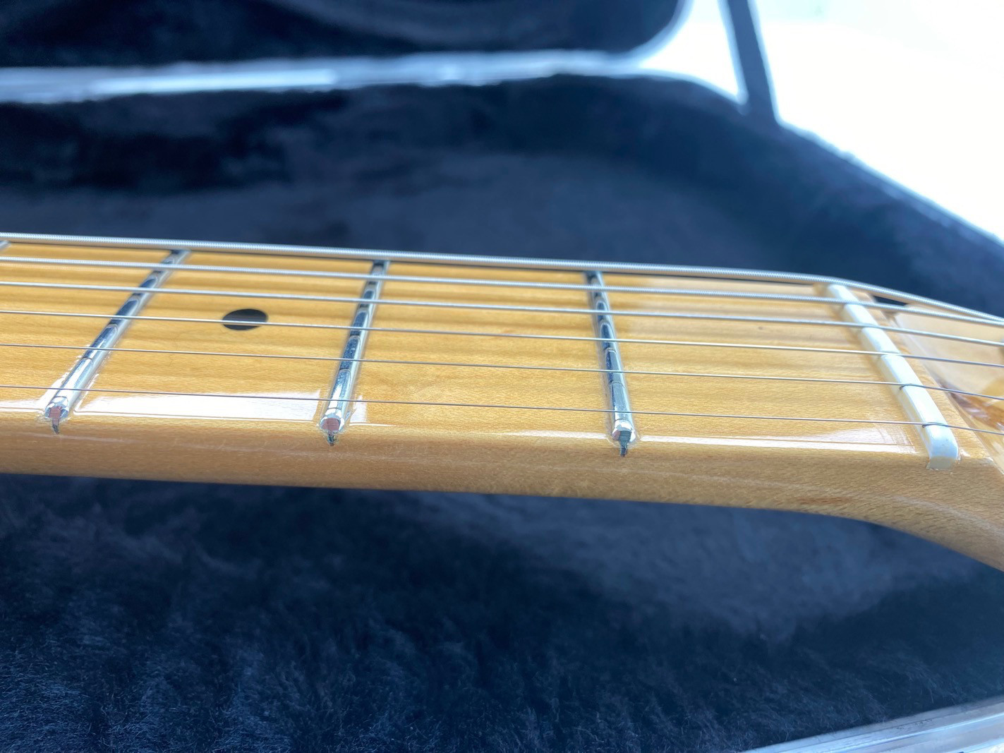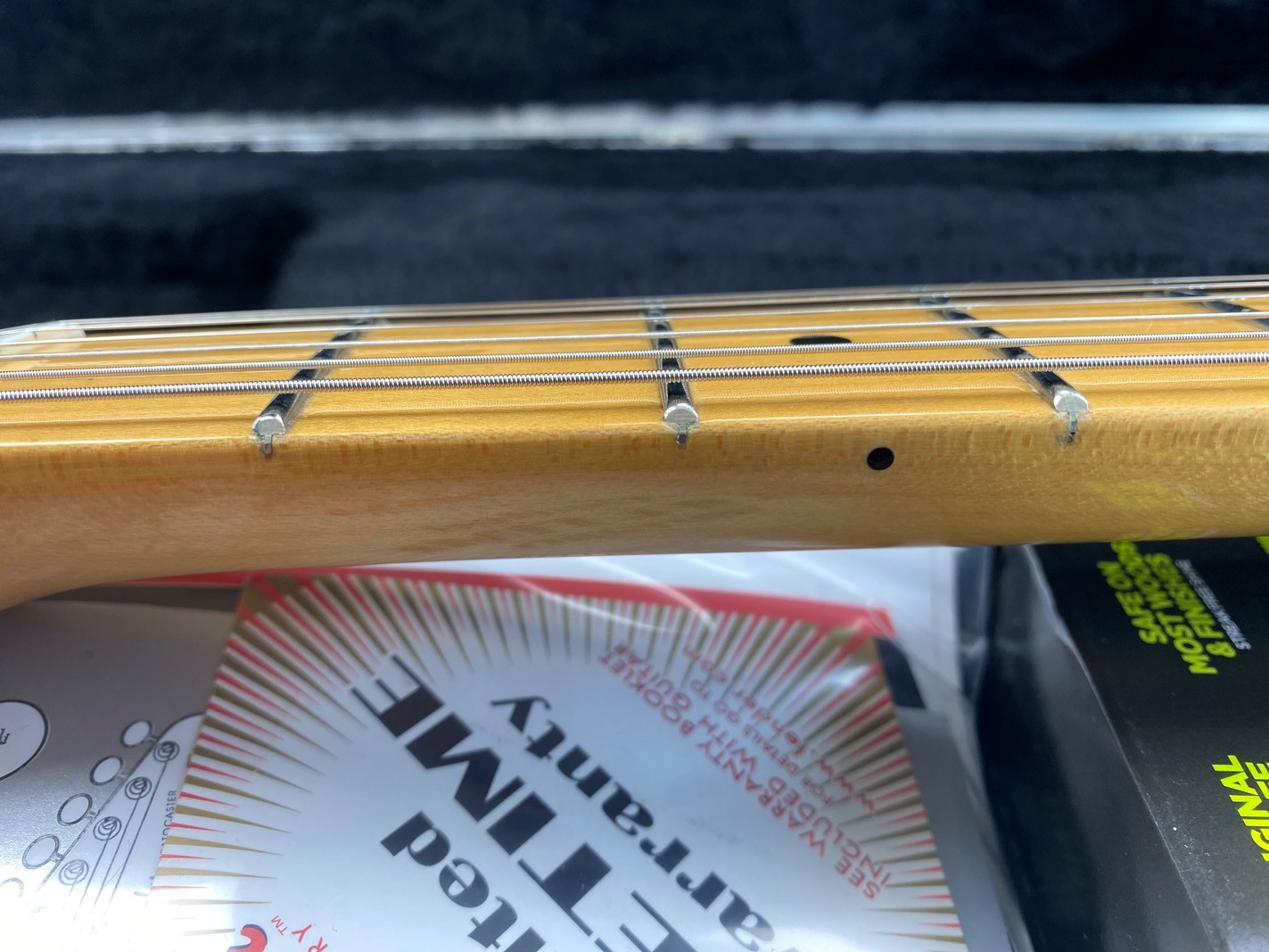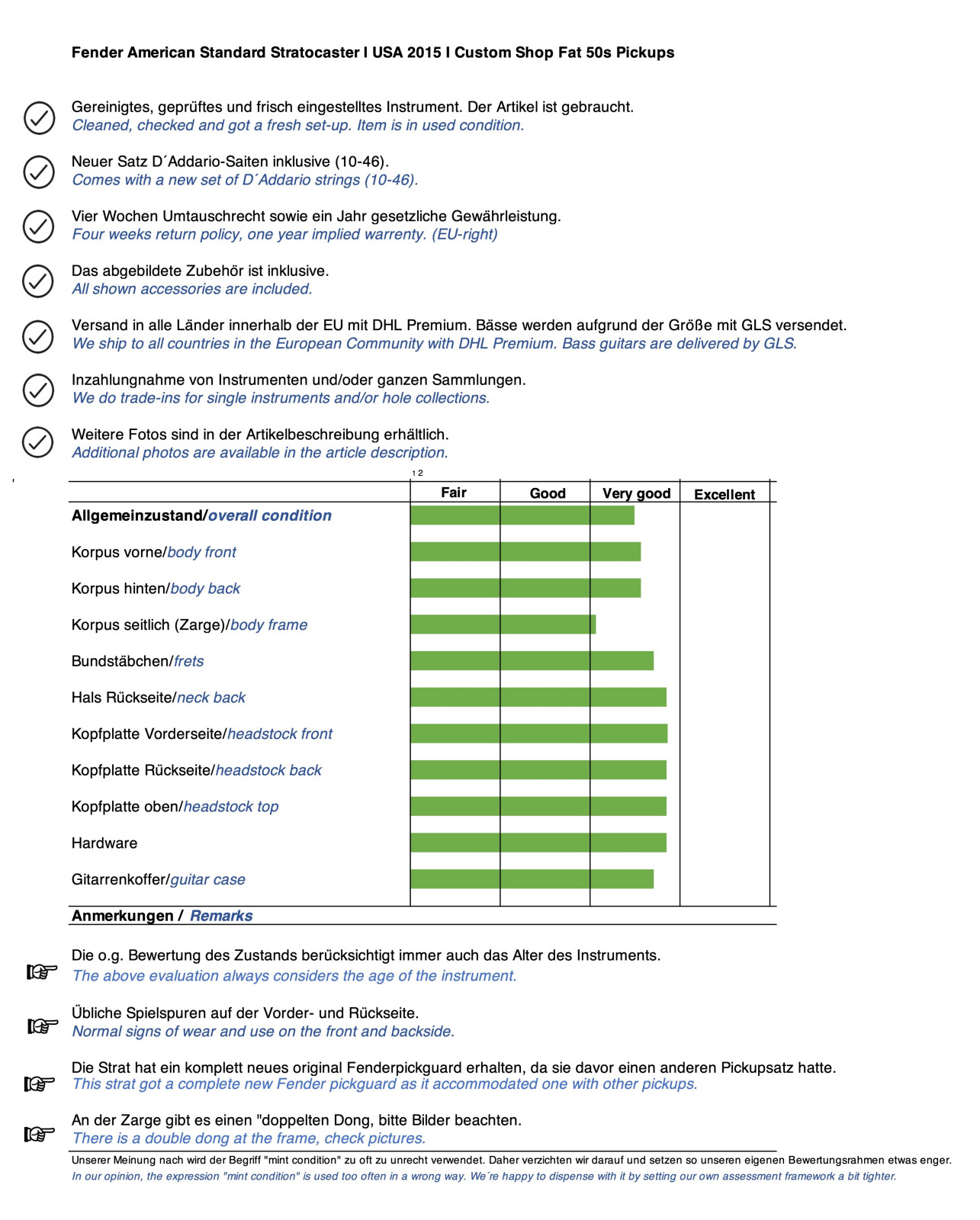 Sie kaufen exakt die auf den zahlreichen Bildern abgebildete gebrauchte Gitarre mit dem ebenso gezeigten Zubehör. Die altersbedingten Gebrauchsspuren gehen hieraus i.d.R. gut hervor. Eine kurze Zustandsbeschreibung finden Sie auf dem ersten Foto dieser Anzeige.
