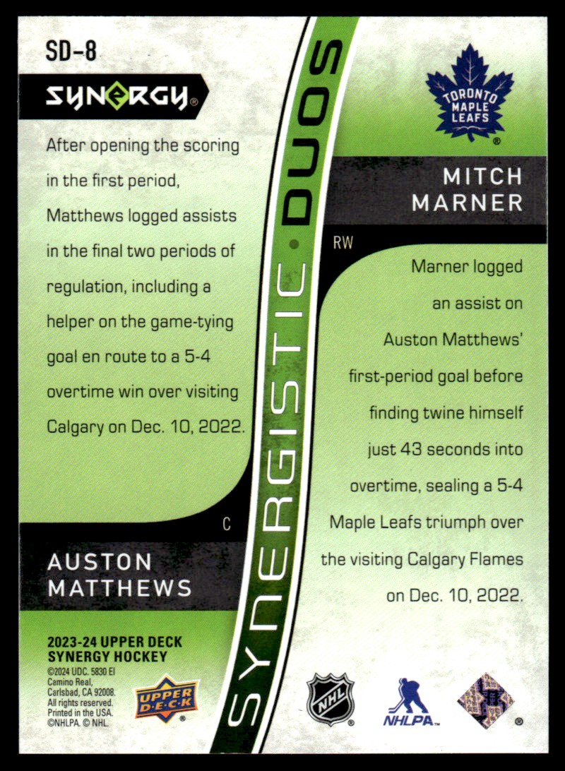 2023-24 Synergy Synergistic Duos Matthews/Marner 535/999 Toronto Maple Leafs
