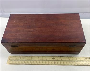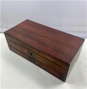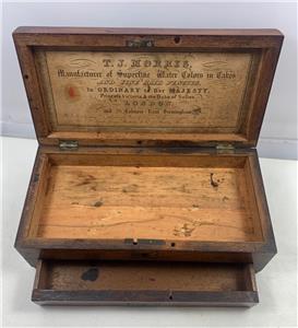 The label is in particularly good condition for a box of this age. The good outer mahogany box with original but tarnished brass escutcheon and drawer handle.