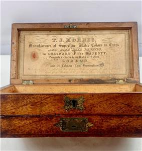 A very early artist's paintbox with a rare original trade label inside the lid of