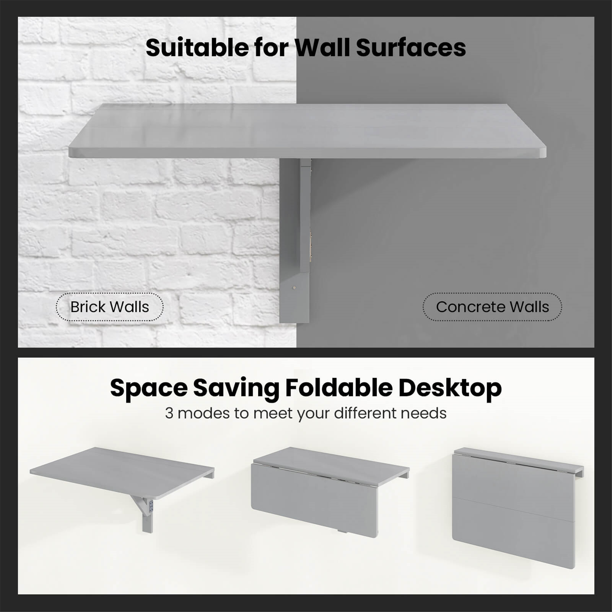 Our brand new wall mounted drop-leaf table is designed with space efficiency in mind to provide a functional table area without using extra space, This folding table is perfect for small apartments, tiny living and minimalist aesthetics for its modular design; the sleek black finish will flawlessly blend into any existing home decor. 2 ways of folding design provides extra space , Put it up when you're ready to eat, compute, write, draw, paint, etc. And in daily ,the table can be folded in half as a storage shelf or fold flat to save you valuable space. This drop leaf table folds out fast and folds flat against wall easily. Great for use in kitchen, offices, hallway, or any places that may need additional display spaces some time. So, don't hesitate to buy one!