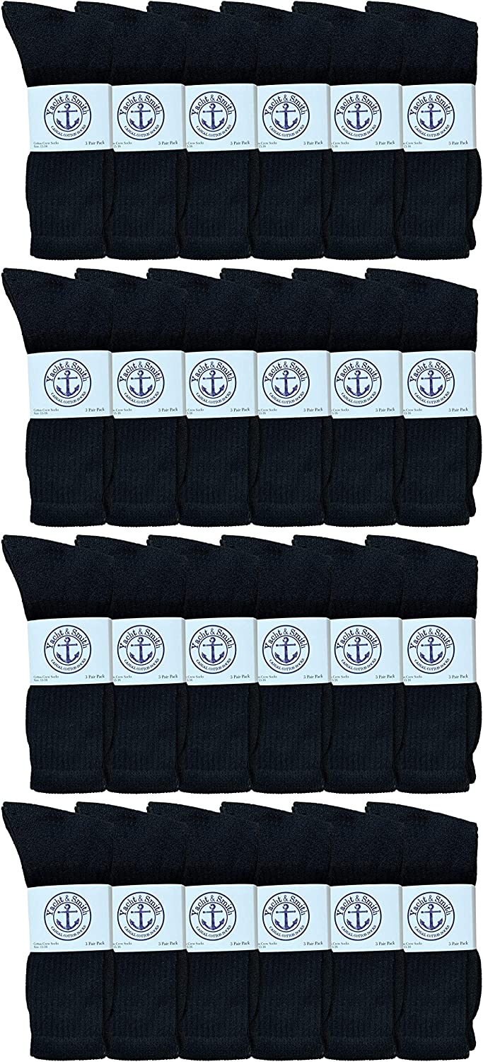 Yacht & Smith by SOCKS'NBULK branded crew socks are known to be a great product geared for basic every day casual wear. Our selection of crew socks are sized ranged from Mens Kings size. Purchase wholesale socks in bulk for various reasons. Large house hold ? charity ? Organization give away ? shopping for wholesale socks will ensure your purchase was the most economical choice without jeopardizing quality. Wholesale sock deals offers the Yacht & Smith by SOCKS'NBULK branded crew socks in 4 color ways, White Black Gray and Navy with a high cotton content gauge of 80%. Cotton socks last longer than synthetic material socks and wear better during the hot weather season. If your needing this purchase sooner than expected please be sure to e mail us via the amazon contact seller control panel to advise us of your needed date. This will ensure our staff will do our best to make this accommodation.