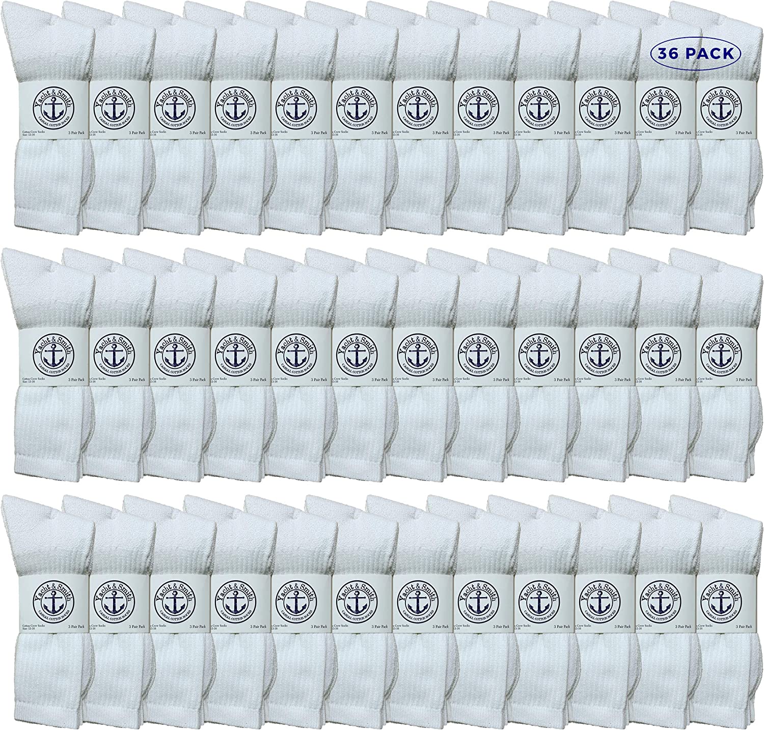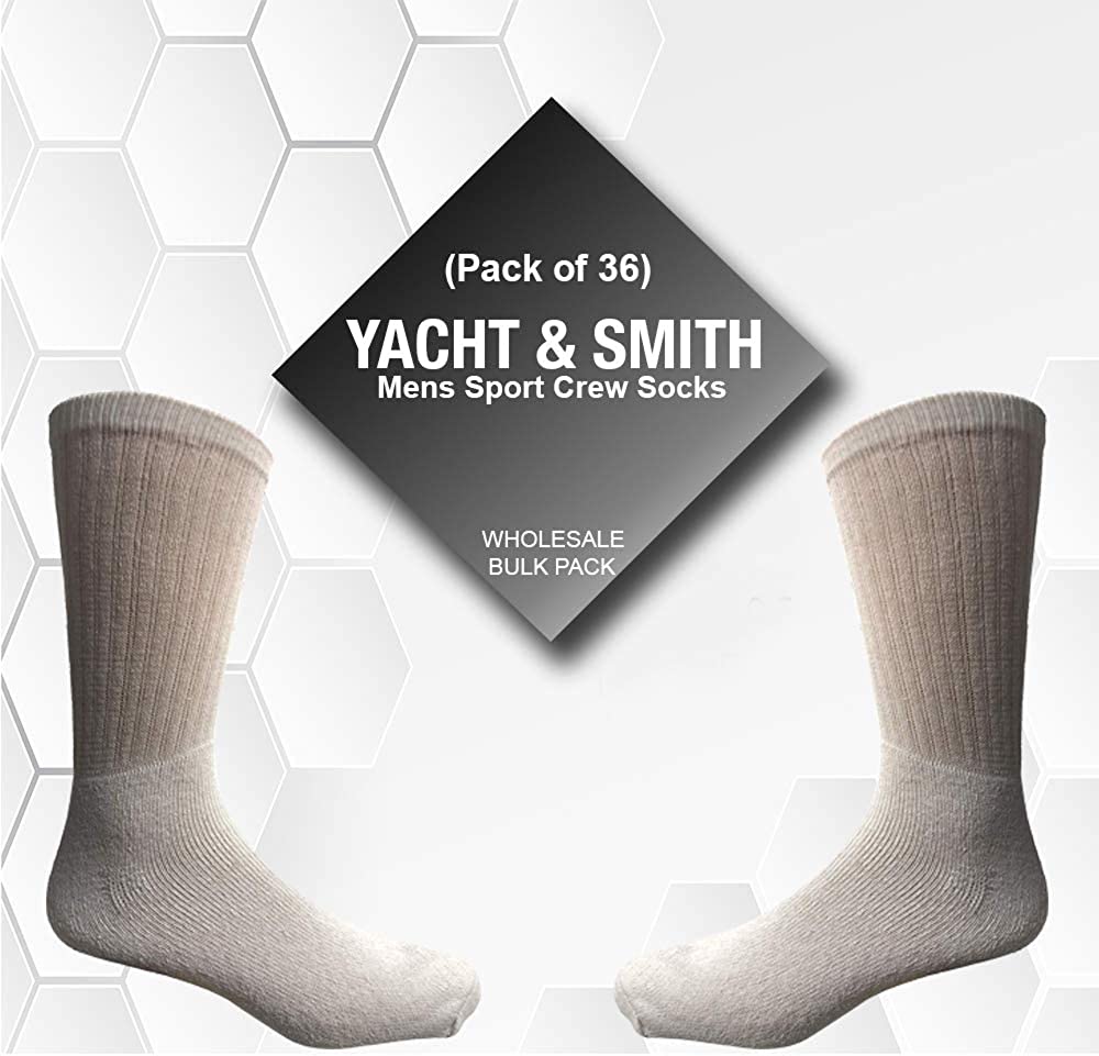 Yacht & Smith by SOCKS'NBULK branded crew socks are known to be a great product geared for basic every day casual wear. Our selection of crew socks are sized ranged from Mens Kings size. Purchase wholesale socks in bulk for various reasons. Large house hold ? charity ? Organization give away ? shopping for wholesale socks will ensure your purchase was the most economical choice without jeopardizing quality. Wholesale sock deals offers the Yacht & Smith by SOCKS'NBULK branded crew socks in 4 color ways, White Black Gray and Navy with a high cotton content gauge of 80%. Cotton socks last longer than synthetic material socks and wear better during the hot weather season. If your needing this purchase sooner than expected please be sure to e mail us via the amazon contact seller control panel to advise us of your needed date. This will ensure our staff will do our best to make this accommodation.