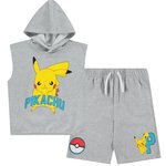 POKEMON Boys Pickachu Hooded Muscle T- Shirt and Shorts Clothing Set- Little...
