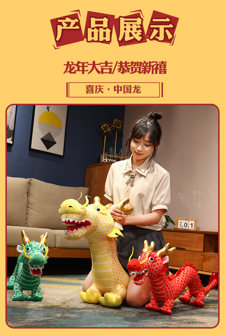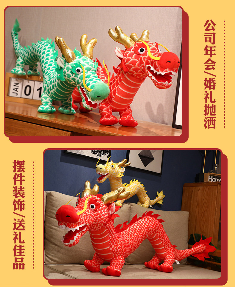 2024 Cute Simulation Chinese Dragon Doll Zodiac Dragon Year Mascot Plush Toy