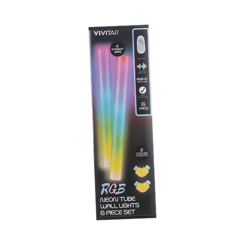The Vivitar RGB Neon Tube Wall Lights provide vivid lighting and creates a stylish vibe in any room of your house. You can use the included controller to adjust the brightness, color, mode, and speed parameters to suit your tastes. The RGB Neon Tube Wall Lights provides more than just ambient lighting, they can react to music and sound playing in your room, flashing to the beat of the music. The versatile design works with any room decor, and it takes up minimal space while still providing plenty of light