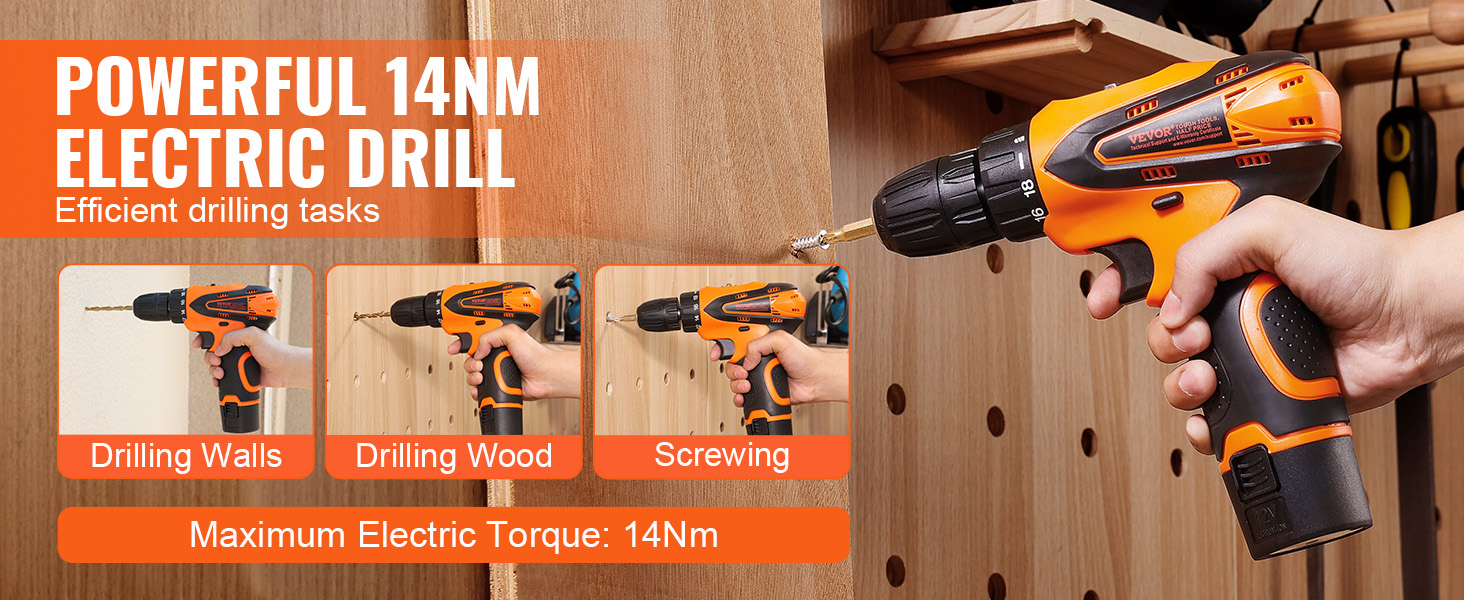 The home tool kit includes a 14 Nm powerful electric drill and multiple drill bits to meet different drilling needs, allowing you to find the right tool for different situations.