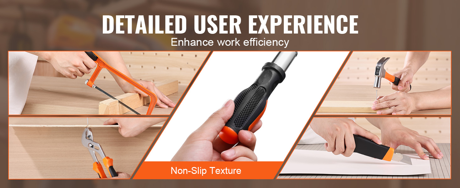 Ergonomic Design: The VEVOR hand tool set features an ergonomic design for a comfortable grip, reducing fatigue during prolonged use. Non-slip design helps you use the tools more effectively, improving work efficiency.