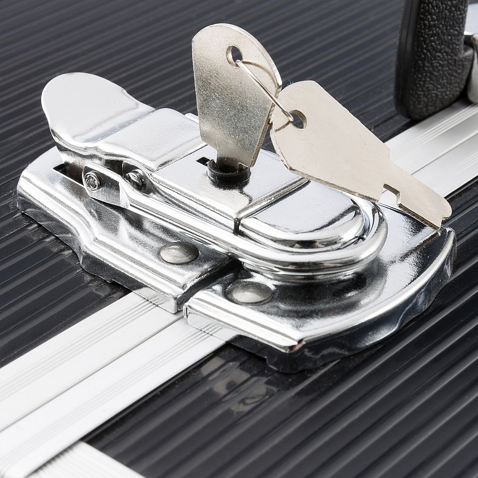 Con una serratura integrata e 2 chiavi, la valigetta garantisce la sicurezza e protegge il contenuto da accessi non autorizzati. Ideale per l'uso in diversi ambienti, anche in viaggio.