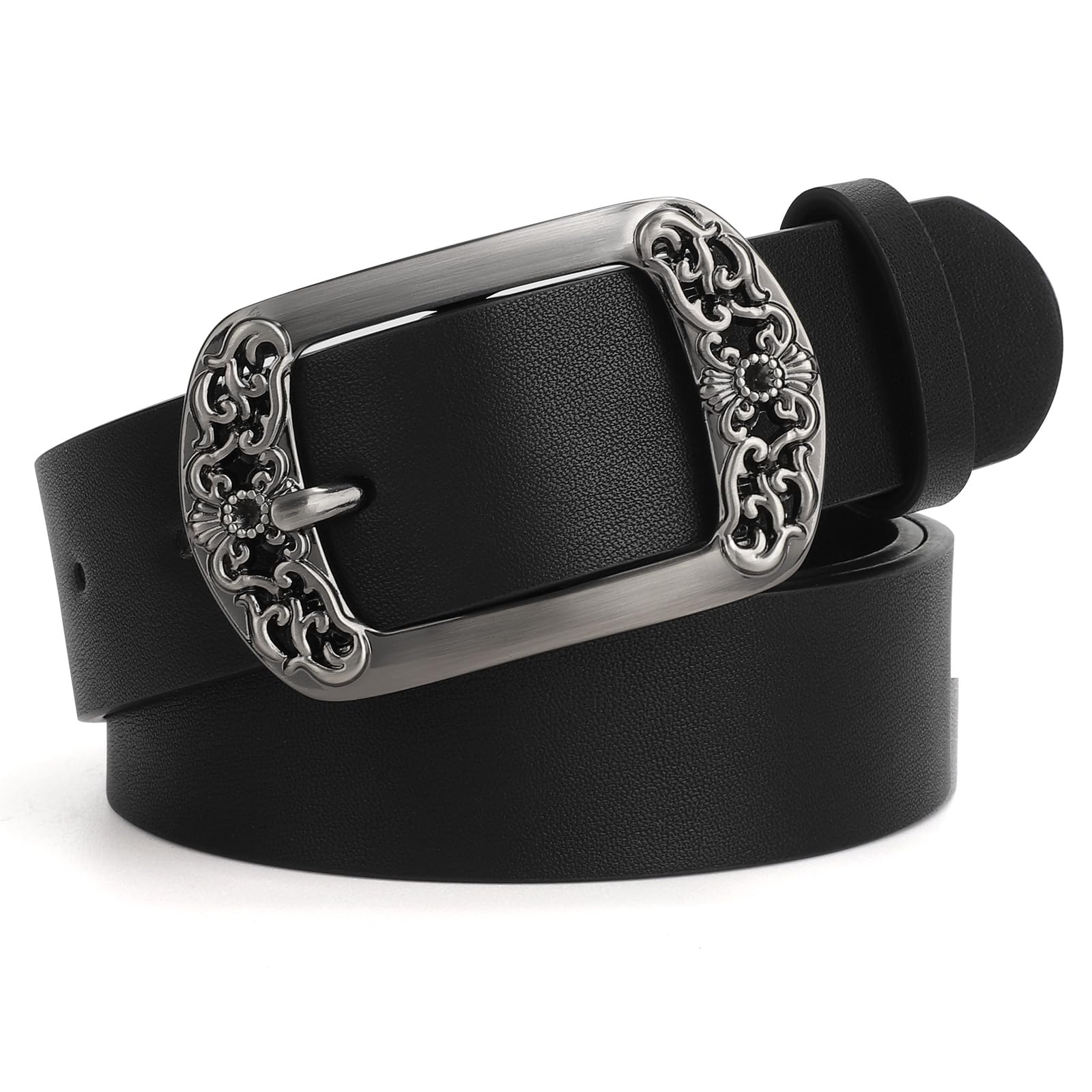 - 🌼【Vintage Flower Buckle Belt】The western belts for women buckle is made of polished zinc alloy, rust proof and always keep bright shine. There are two kinds of buckle, black and gold. The black buckle adopts flower carving technology, which becomes the finishing touch of the whole belt.