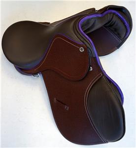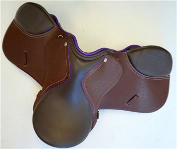 Saddle is suitable to go on a Full Quarter Horse as well. That's what most of our customers are using it on. This good looking well made saddle comes in a grained leather with Softy Leather on a well cushioned seat and softy knee roll. Has been enhanced with a PURPLE/MAUVE trim around the cantle and jockey!