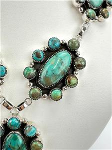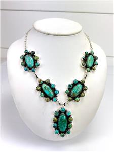 -Very nicely made, 5 cluster Turquoise pieces linked together to form this statement necklace