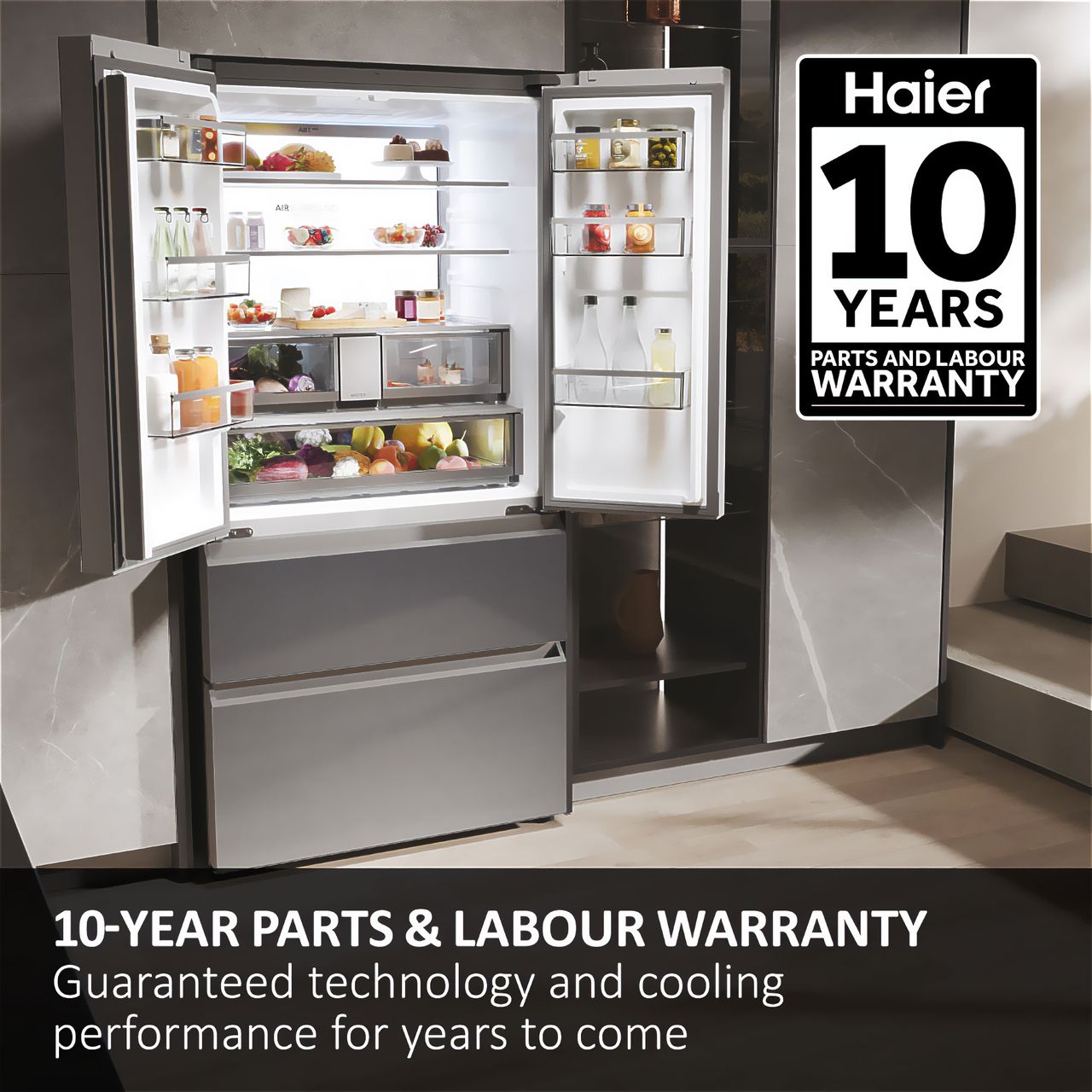 Haier HFR79F19EFGK FD 90 Series 7 91cm Frost Free American Fridge Freezer