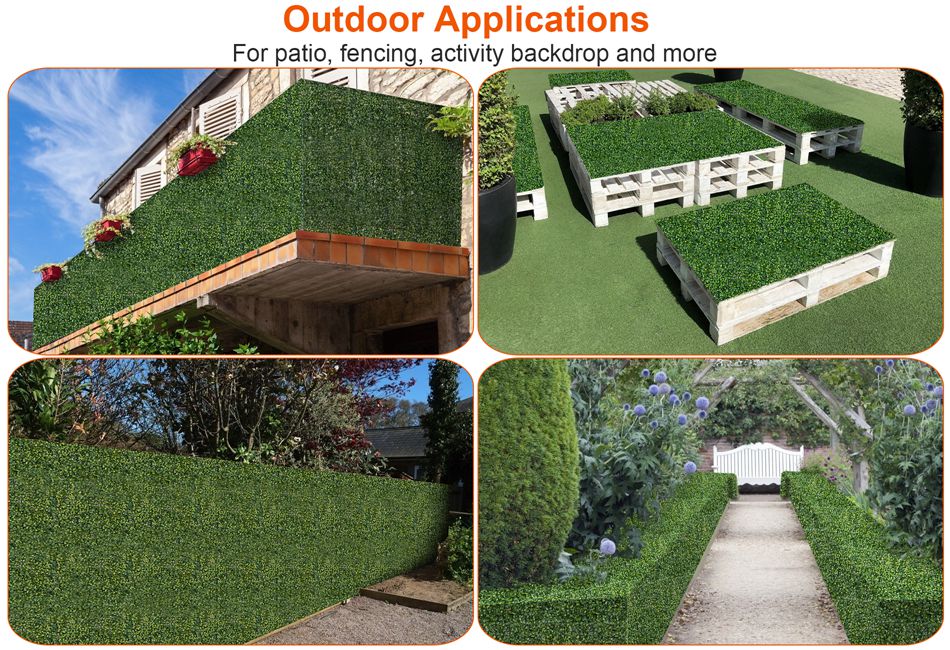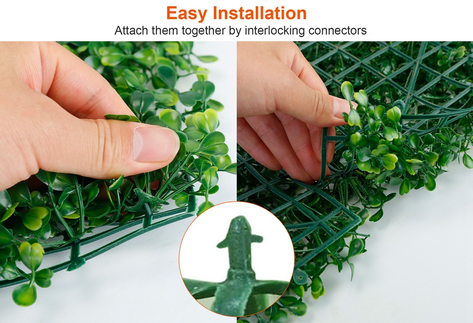 - *Maintenance Free:Different from real hedges,our artificial greenery panels do not need of maintenance,trimming and upkeep. Without watering day by day and will look amazing all year.