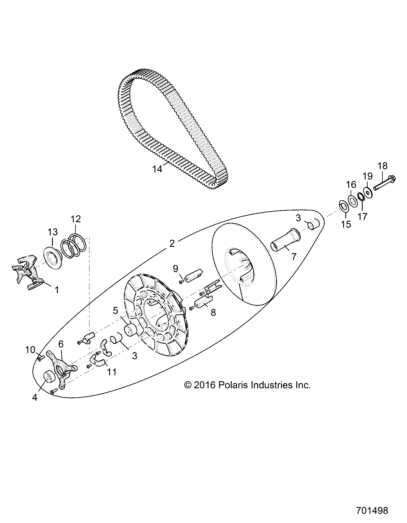 | 2018 | Polaris | RZR XP TURBO S (R12) - Z18VEL92BK/BR/LK | DRIVE TRAIN, SECONDARY CLUTCH - Z18VEL92BK/BR/LK (701498) | BELT-DRIVE |