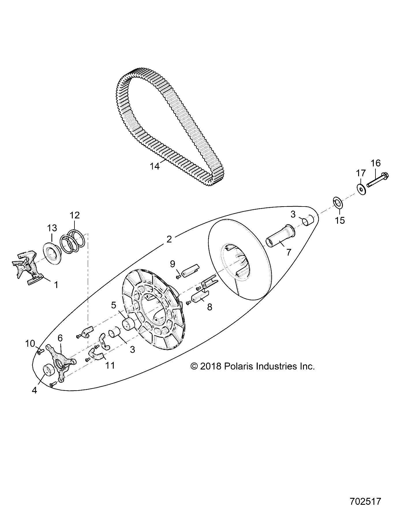 | 2017 | Polaris | RZR XP TURBO TRACTOR (R03) - Z17VDS92CM | DRIVE TRAIN, SECONDARY CLUTCH - Z17VDS92CM (700448) | BELT-DRIVE |