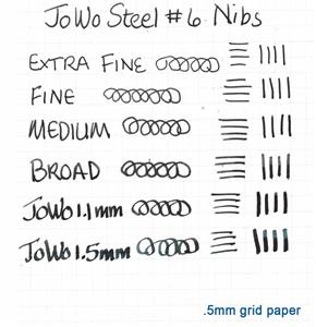 - See writing sample for the standard JoWo nibs below.