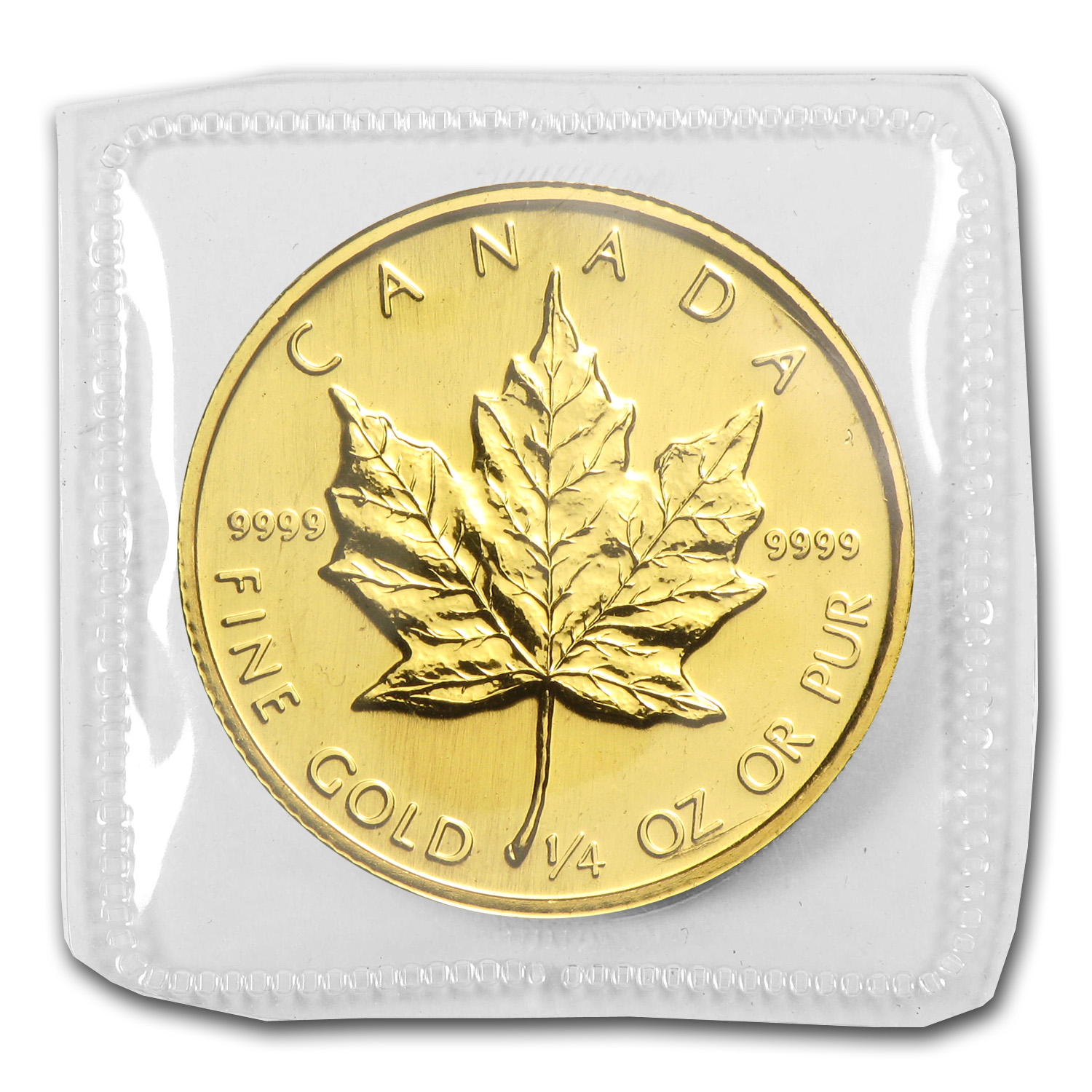 The Gold Canadian Maple Leaf coin remains one of the most popular bullion coins to date, not only for its iconic single maple leaf design, but beauty and high purity as well. Add this outstanding 1/4 oz 1987 Gold Maple Leaf to your cart today!