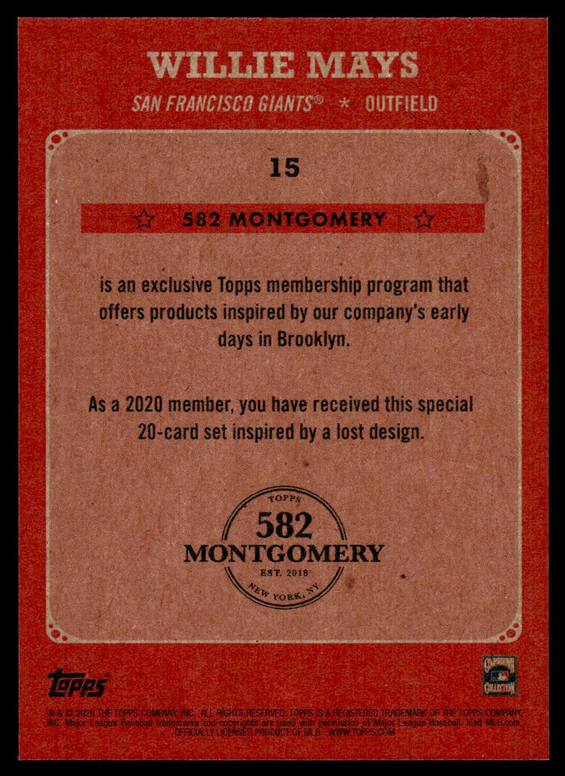 2020 Topps Montgomery Club Willie Mays San Francisco Giants #15