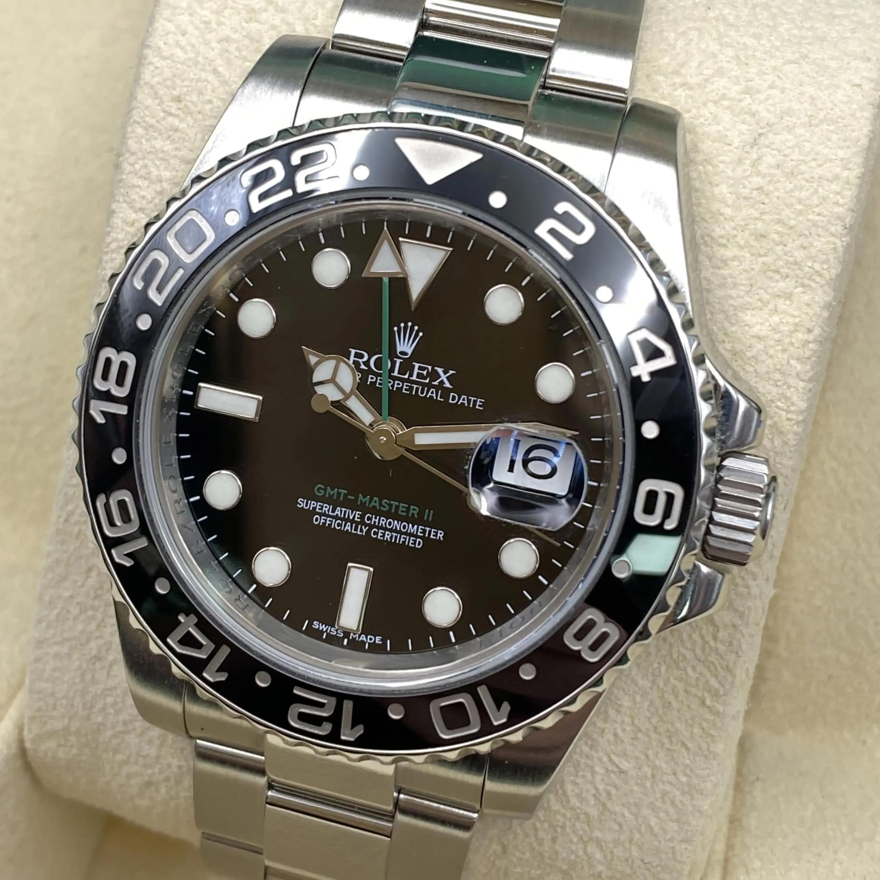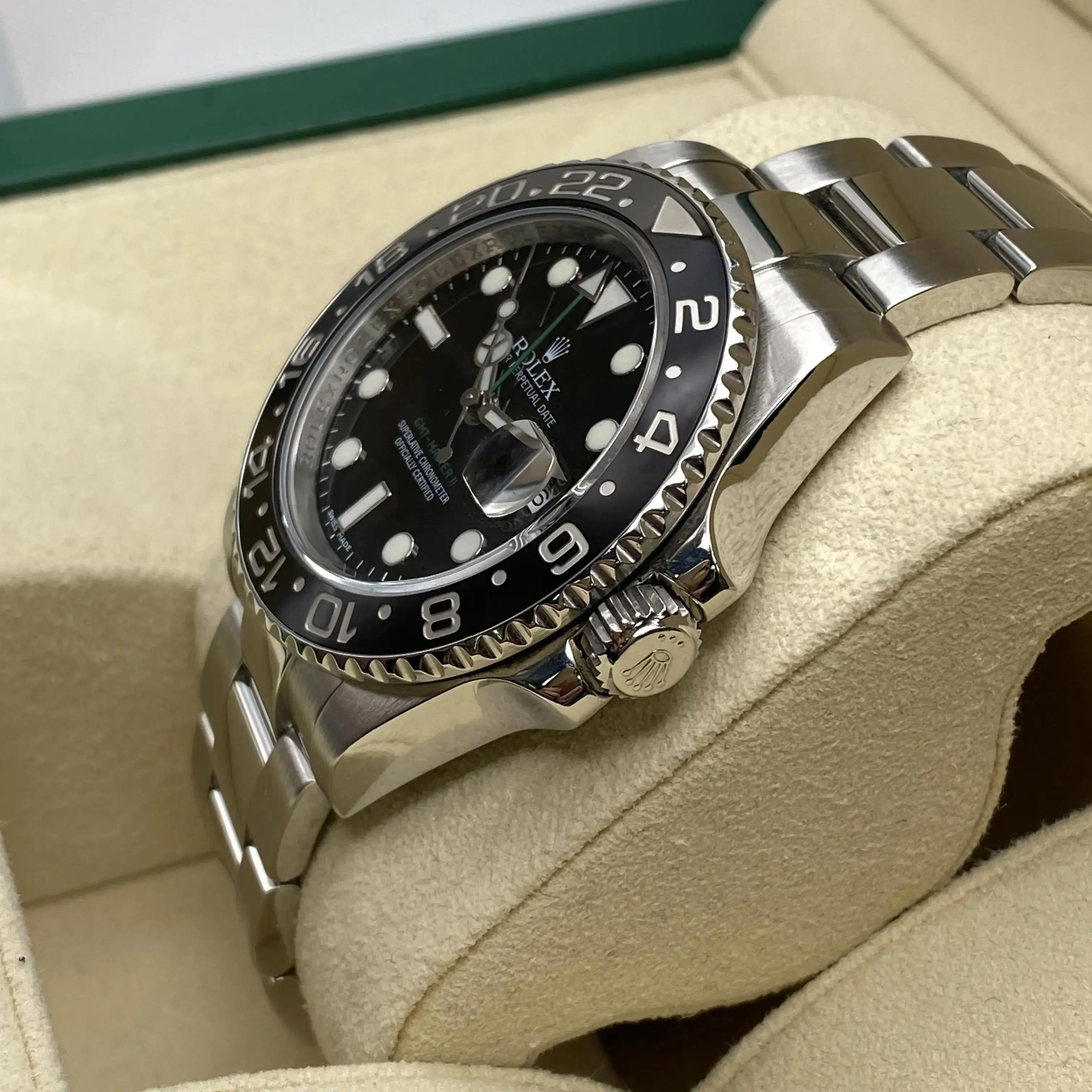 Rolex GMT-Master II Black Index Dial Oyster Steel Automatic Mens Watch 116710LN