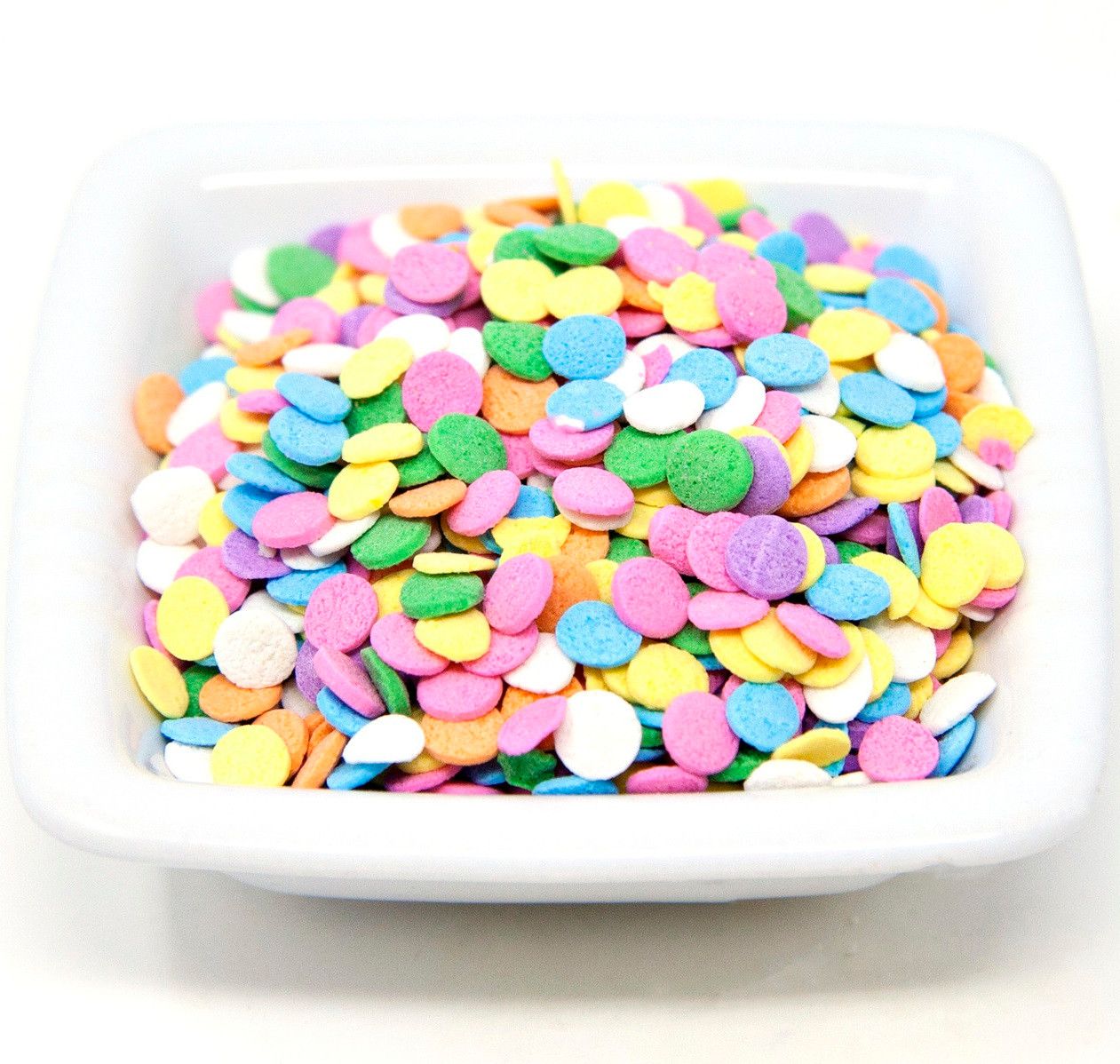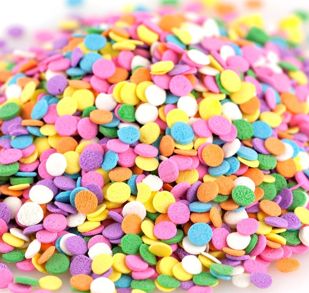 This bright mix will add a fun touch to your next birthday cake, cookies or even ice cream sundaes with pink, orange, yellow, green, blue, purple and white confetti shapes.