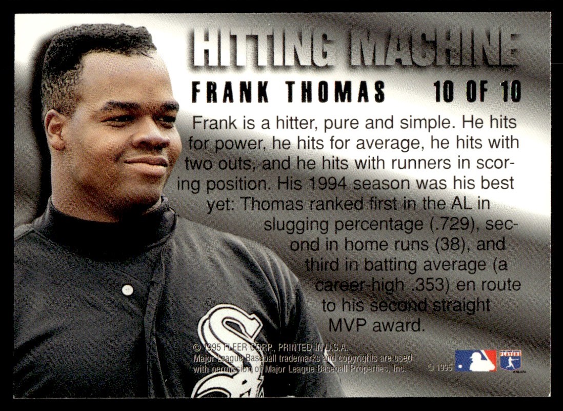 | 1995 Ultra Hitting Machine Baseball Card Frank Thomas Chicago White Sox #10 |