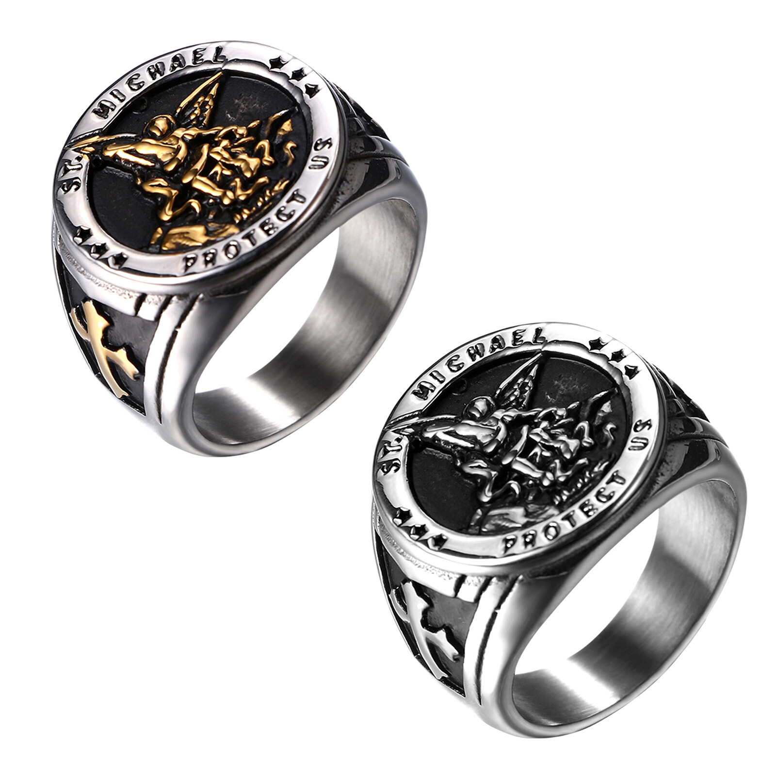 Archangel St. Michael Protect Us Amulet Ring Stainless Steel Biker Band for Men